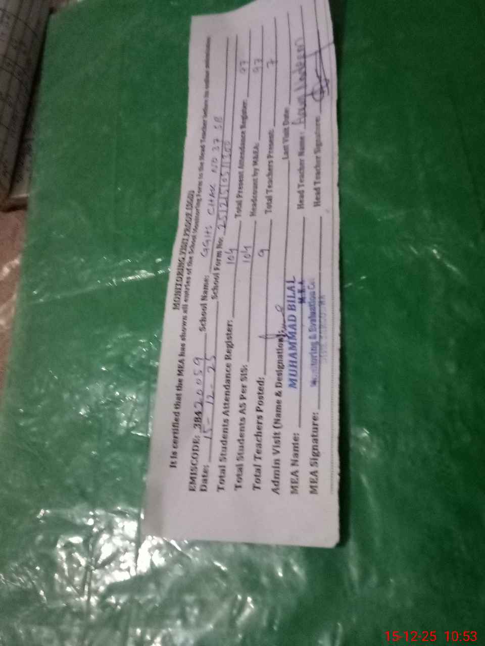 | Certified that this School was Inspected by the Undersigned MEA/DMO Today and the Information Stated Above is as Per Record. | |||||