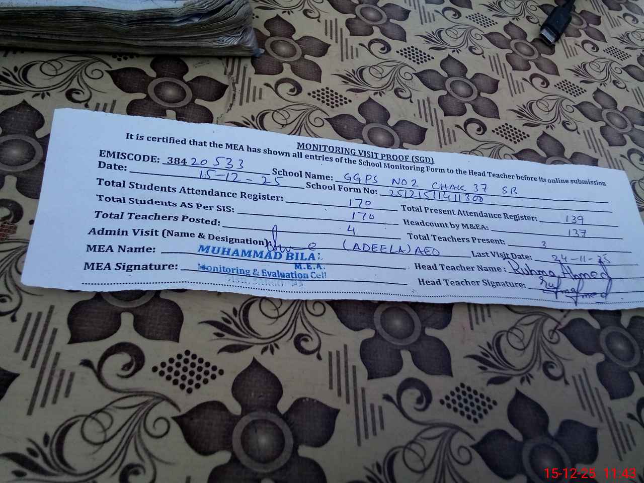 | EMIS Code: 38420533 | Name of School: GGPS NO.2 CHAK NO.37 SB | |||