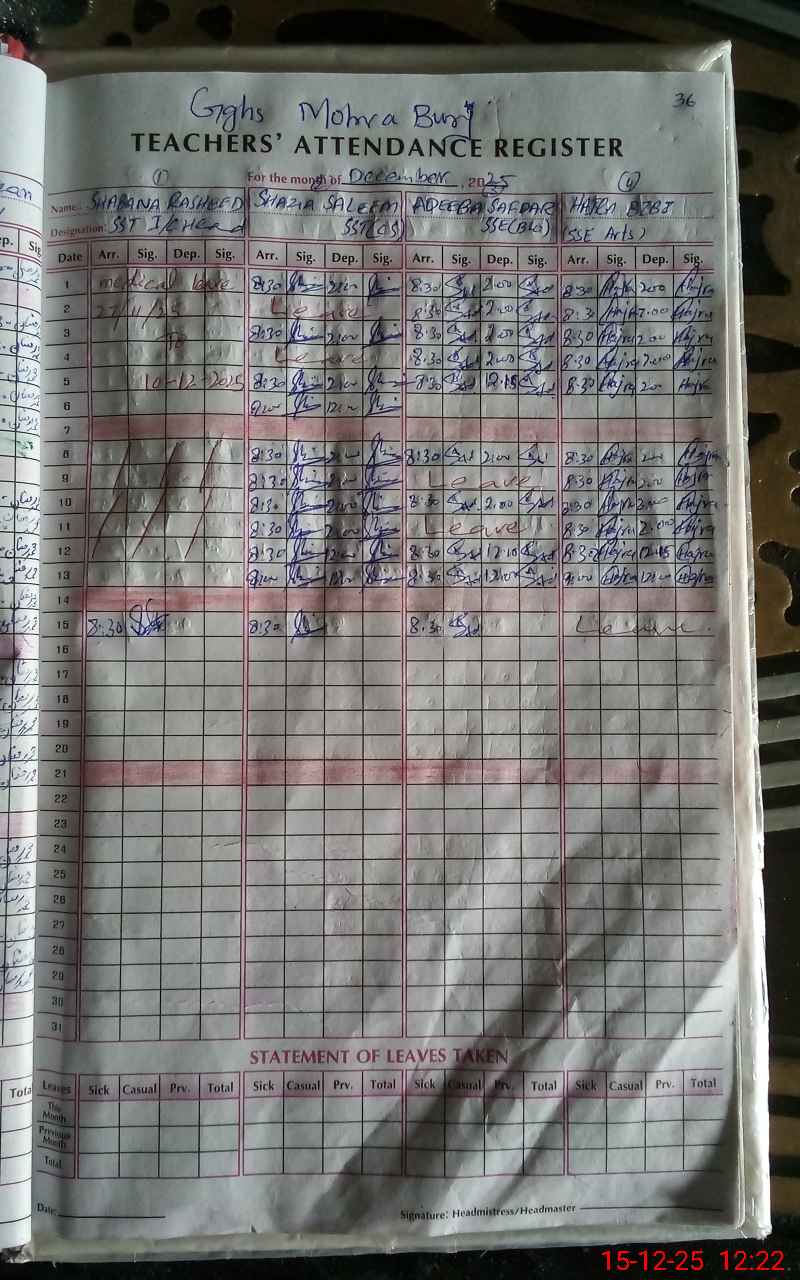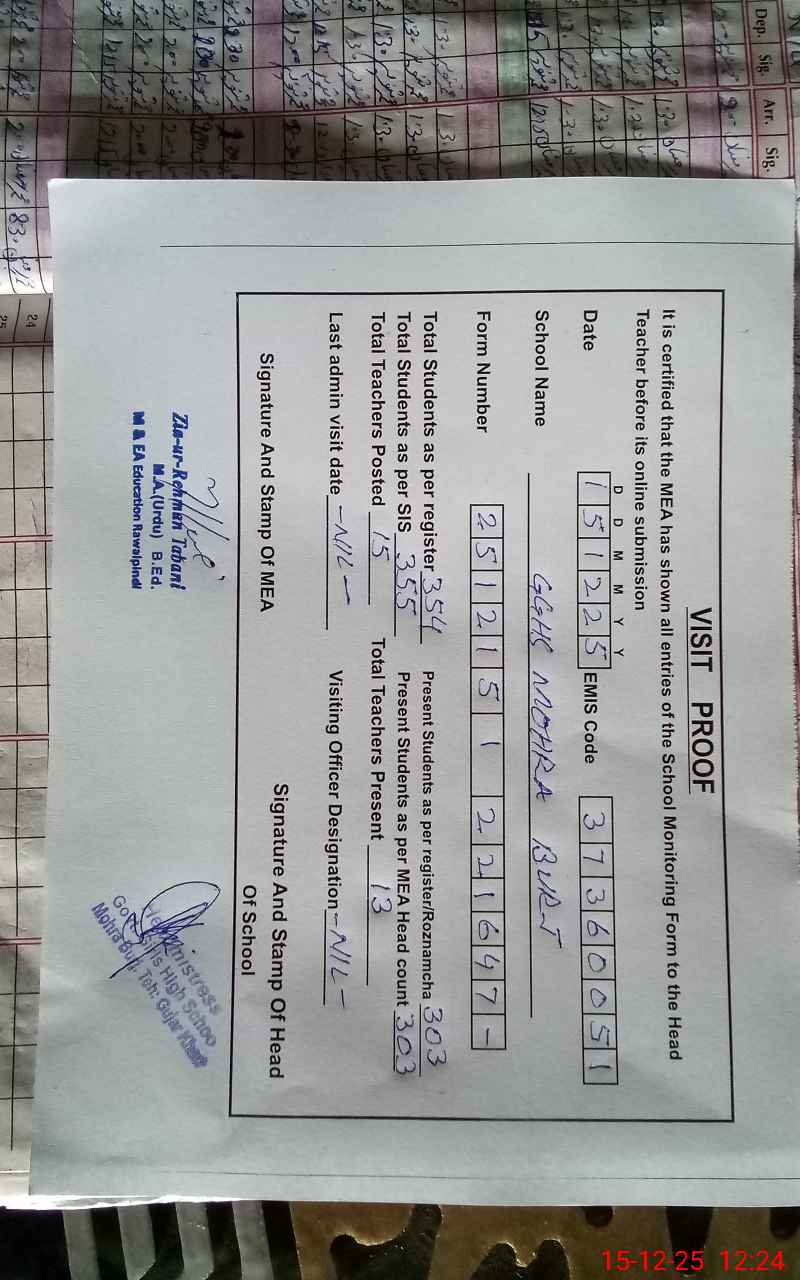 | EMIS Code: 37360051 | Name of School: GGHS MOHRA BURJ | |||