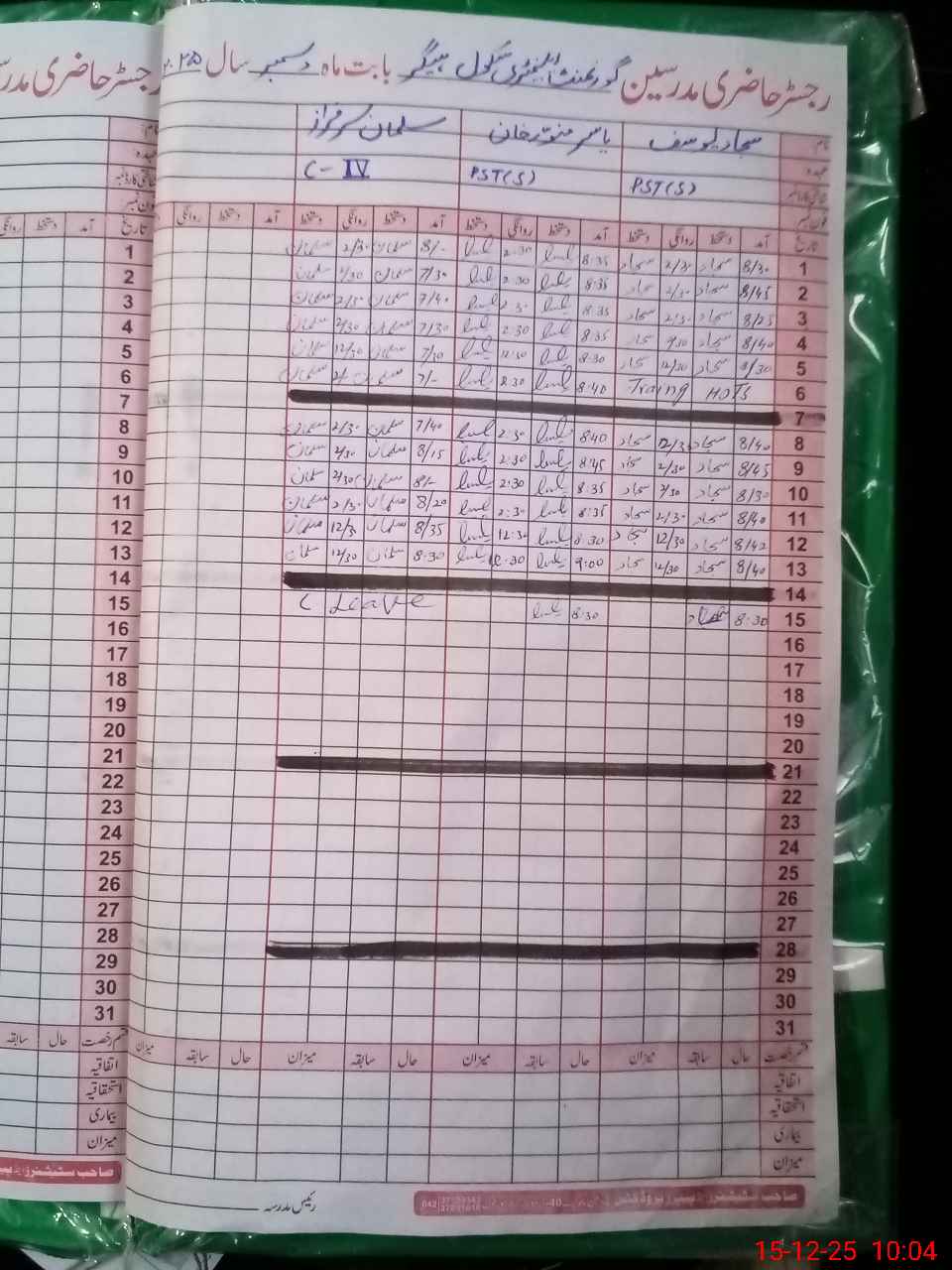 | CNIC | Full Name | Designation | R/C | Absence During Last Calender Month |