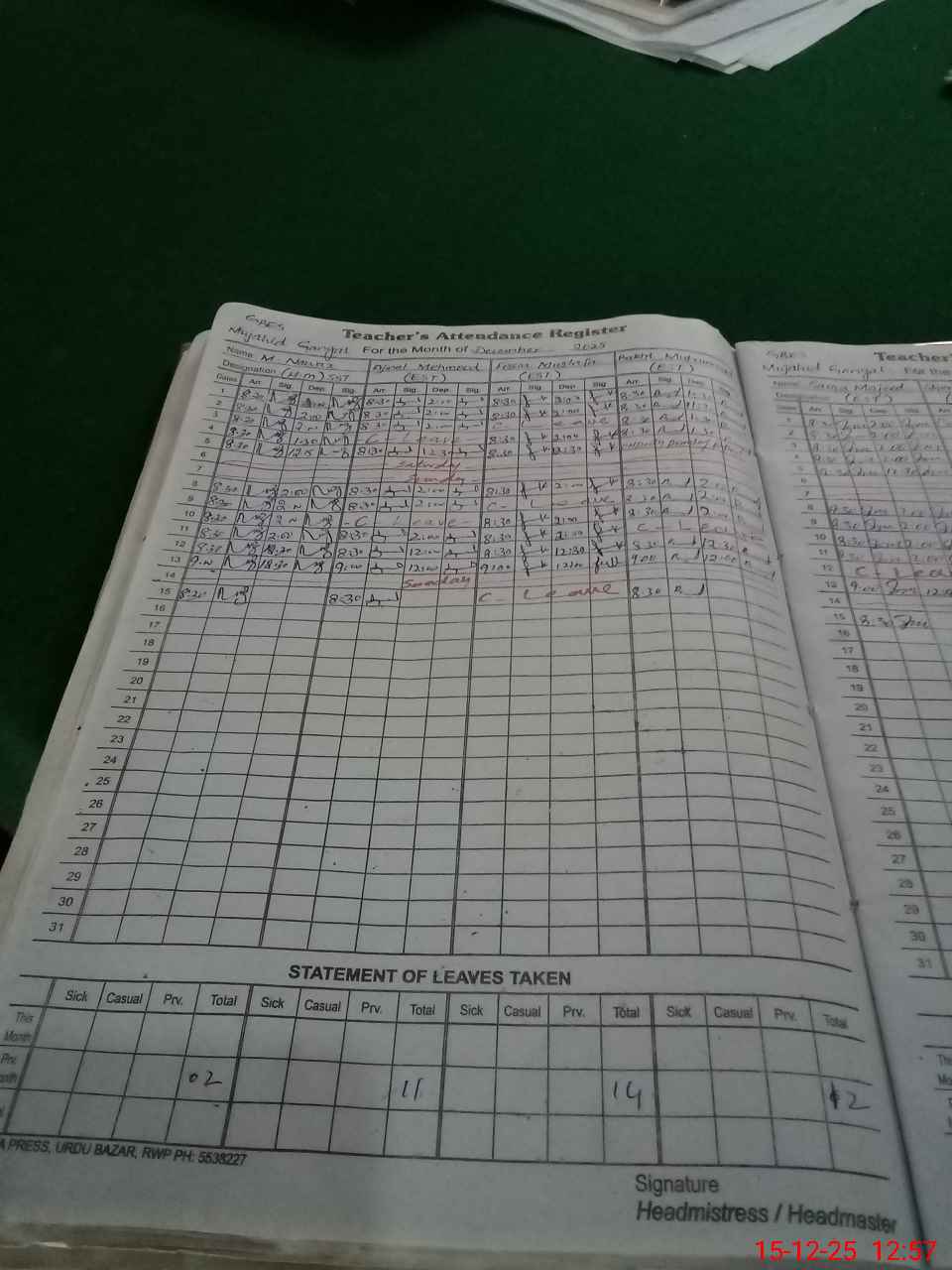 | Name: MU**** NA**** Designation: (School Headmaster's/Headmistress's) S.S.T.(G) Phone/Cell Number: 03**** |