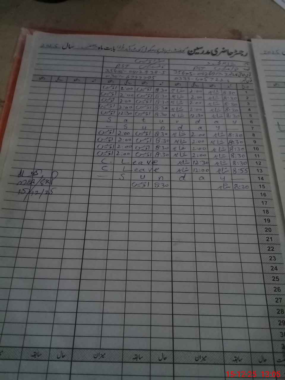 | CNIC | Full Name | Designation | R/C | Absence During Last Calender Month |