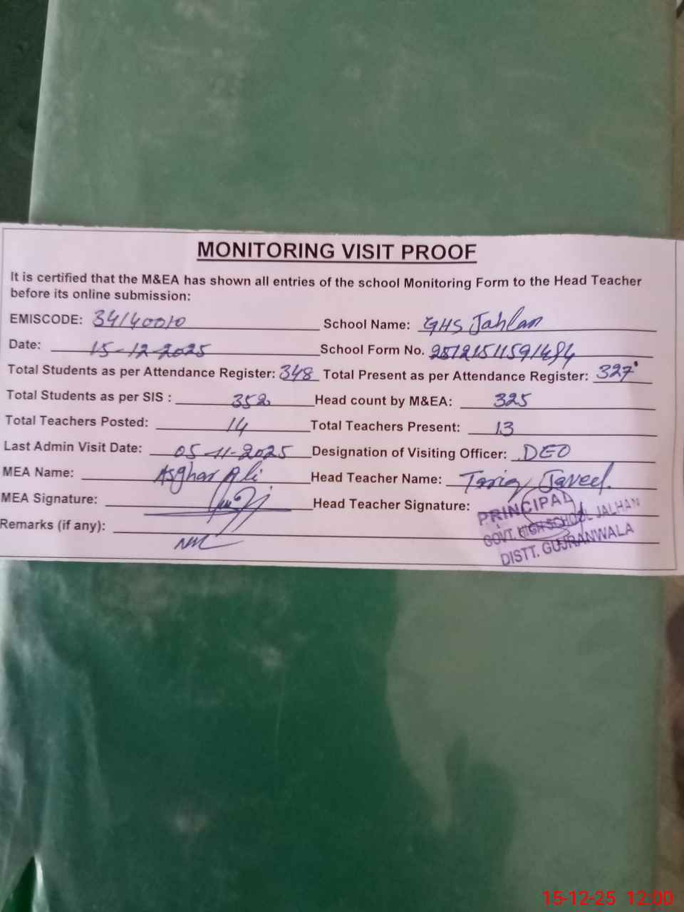 | EMIS Code: 34140010 | Name of School: GHS JAHLAN | |||