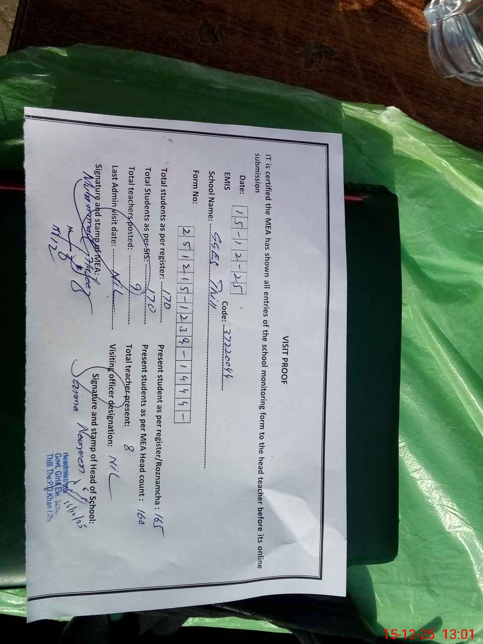 | Certified that this School was Inspected by the Undersigned MEA/DMO Today and the Information Stated Above is as Per Record. | |||||