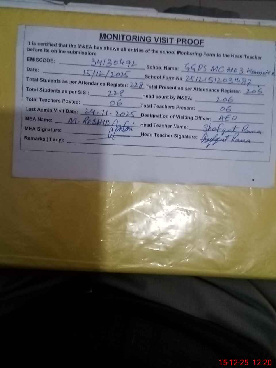 | EMIS Code: 34130492 | Name of School: GGPS MC NO.03 KAMOKE | |||