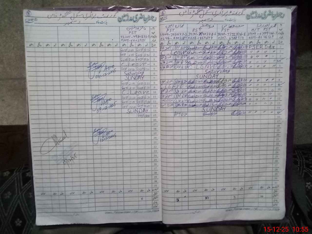 | CNIC | Full Name | Designation | R/C | Absence During Last Calender Month |