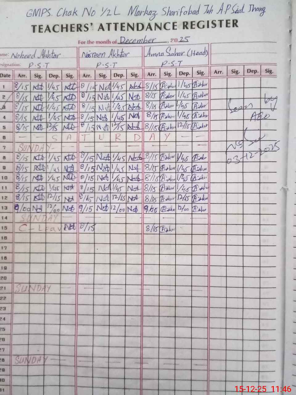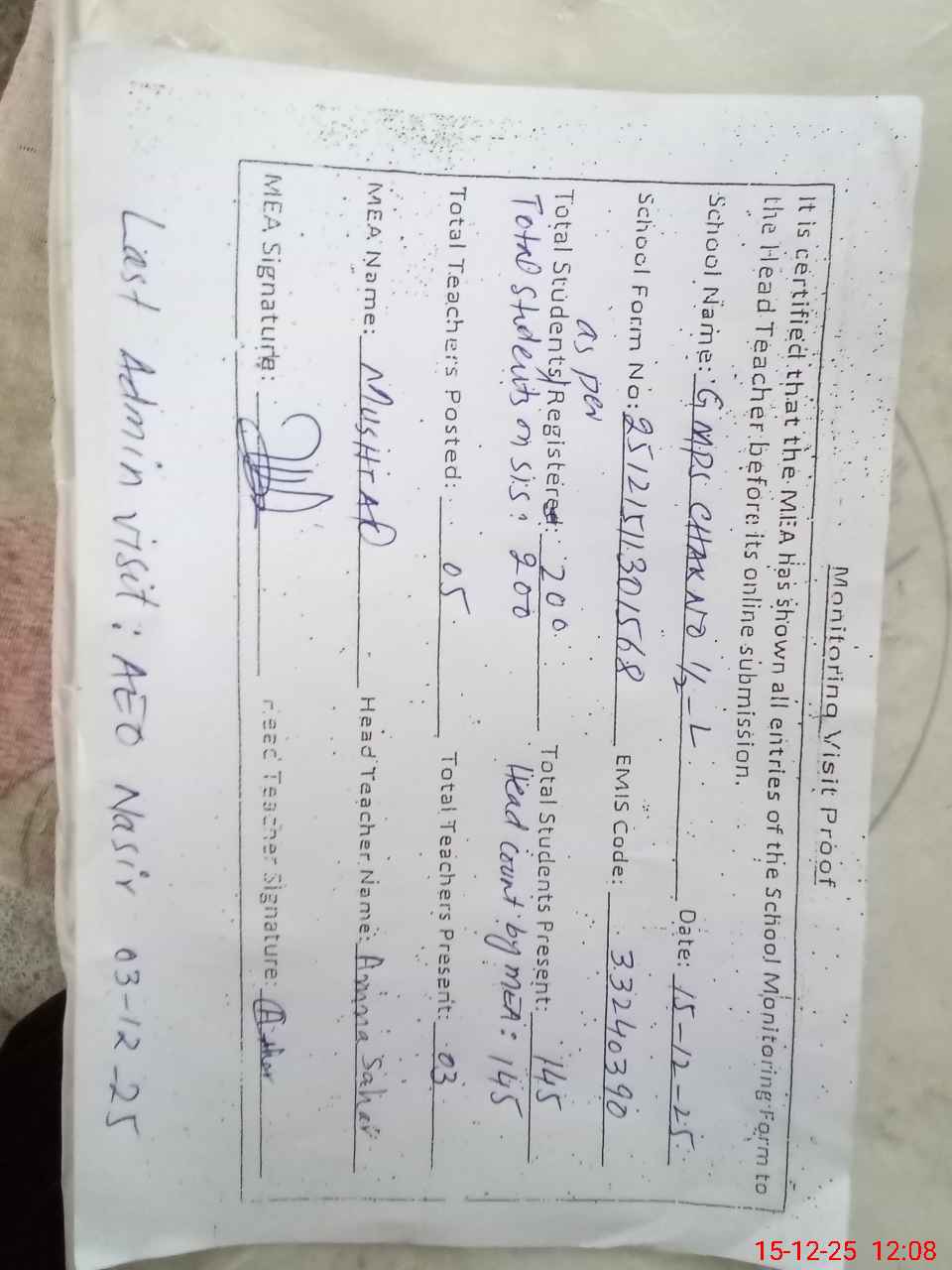 | EMIS Code: 33240390 | Name of School: GMPS CHAK NO 1/2 L | |||