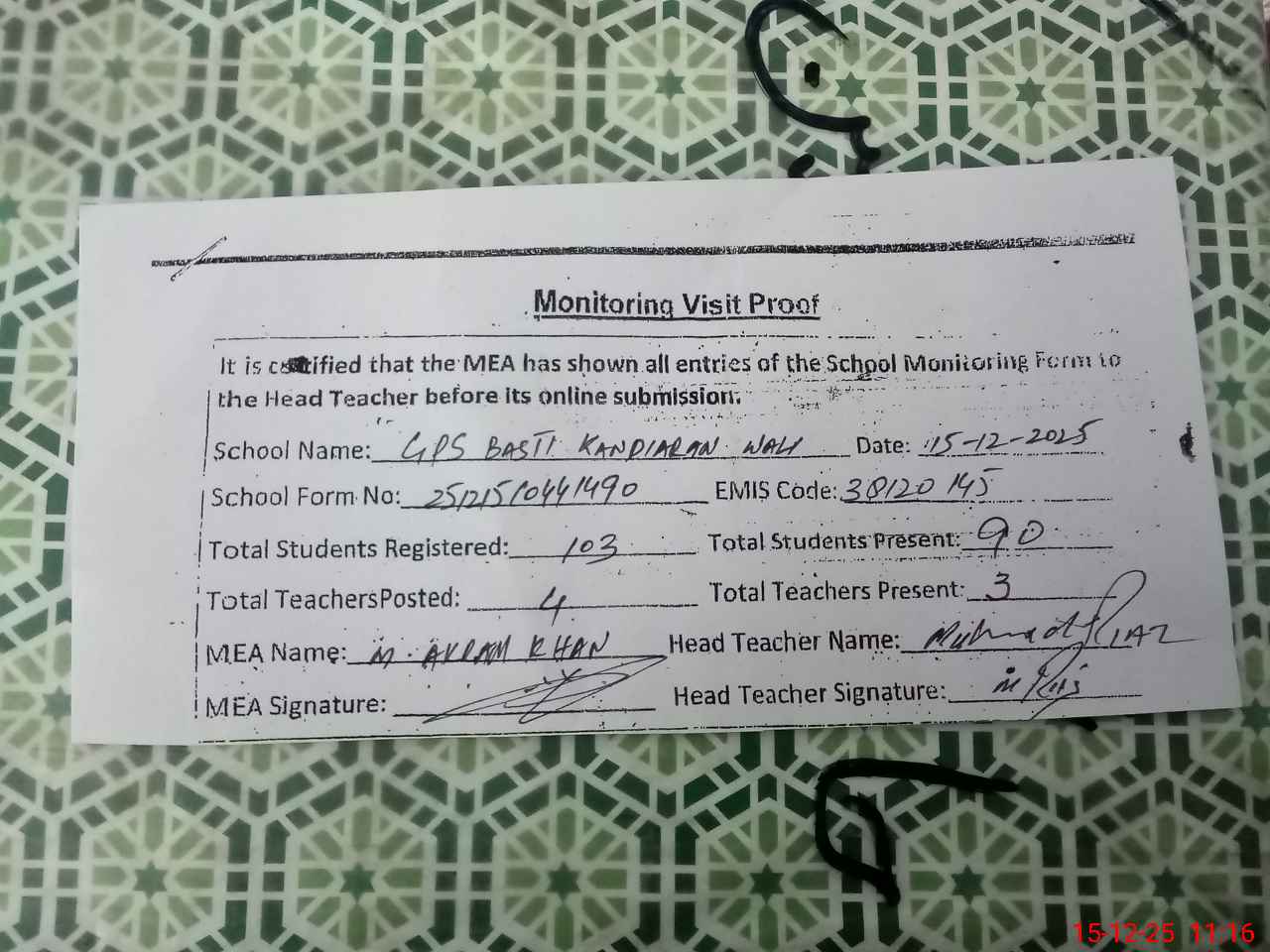 | EMIS Code: 38120145 | Name of School: GPS BASTI KANDIARAN WALI | |||