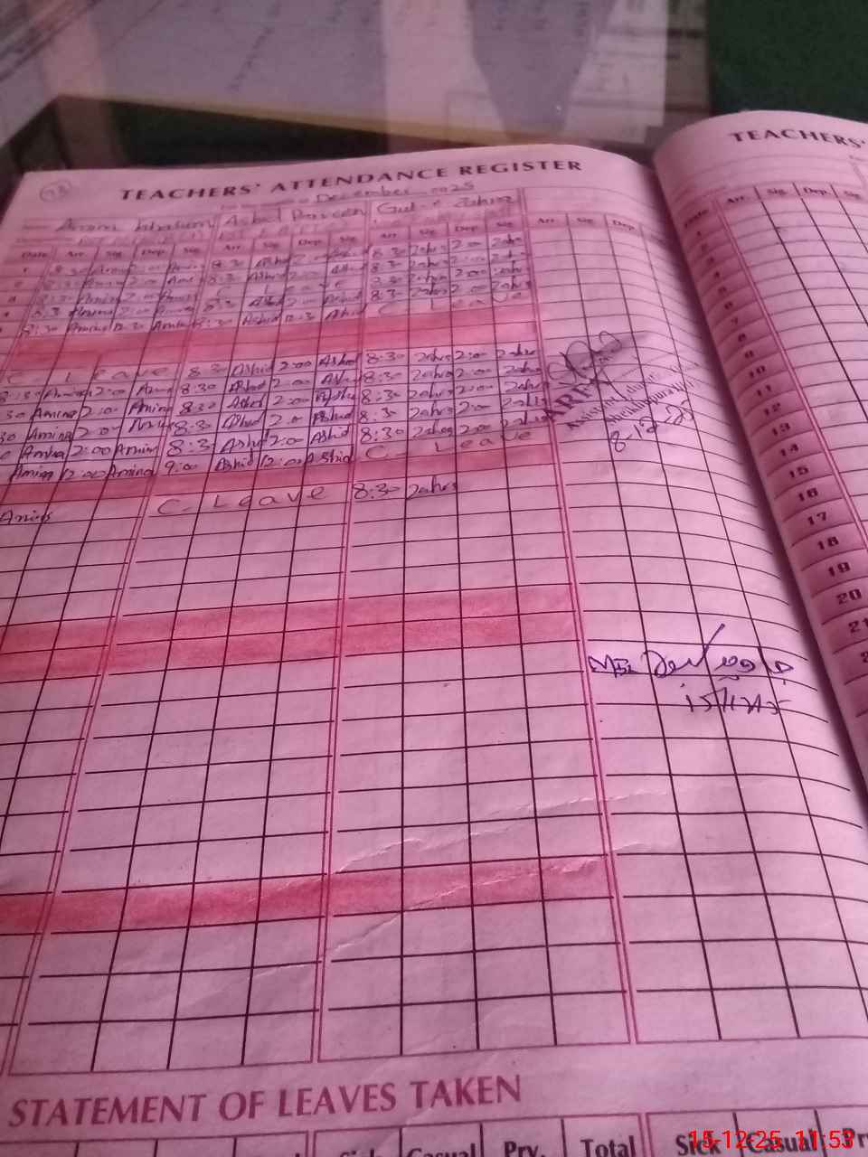 | CNIC | Full Name | Designation | R/C | Absence During Last Calender Month |