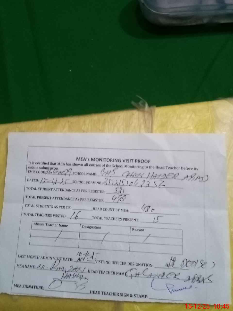 | EMIS Code: 36410029 | Name of School: GHS CHAK HAIDER ABAD, NAWAN SHEHR | |||