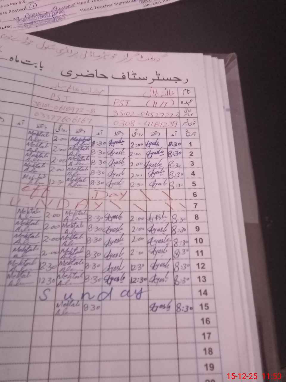 | Name: Ay**** Bi**** Designation: (School Headmaster's/Headmistress's) Head Mistress Phone/Cell Number: 03**** |