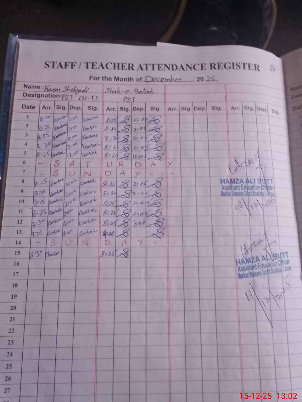 | Name: Ka**** Sh**** Designation: (School Headmaster's/Headmistress's) Head Mistress Phone/Cell Number: 03**** |