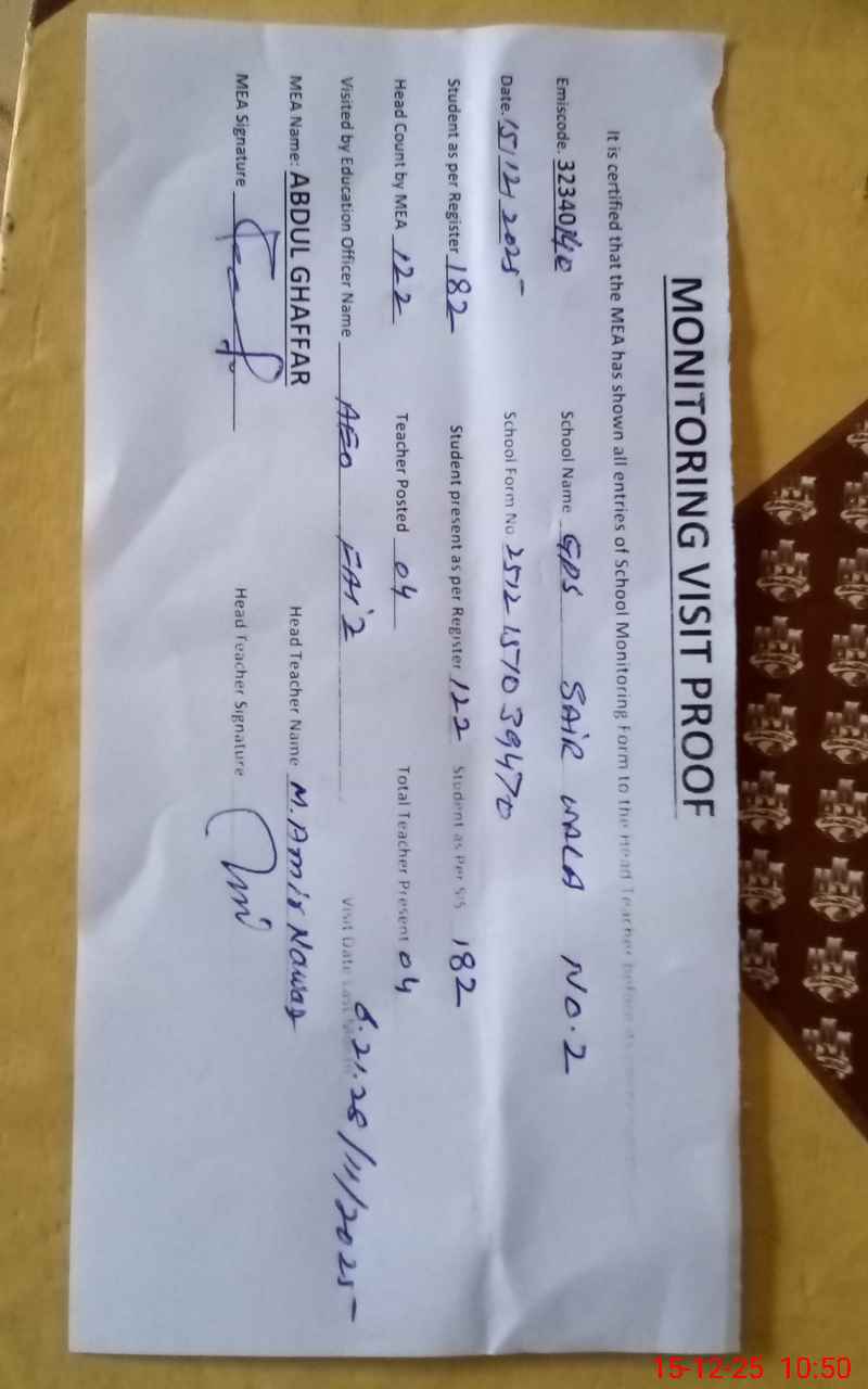 | EMIS Code: 32340140 | Name of School: GPS SAIR WALA NO. 2 | |||