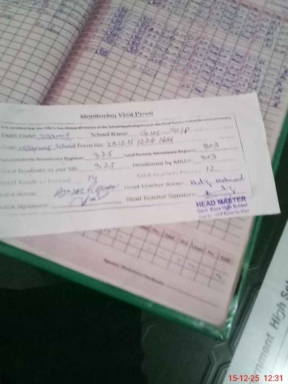 | Name: kh**** me**** Designation: (School Headmaster's/Headmistress's) In Charge H M Phone/Cell Number: 03**** |