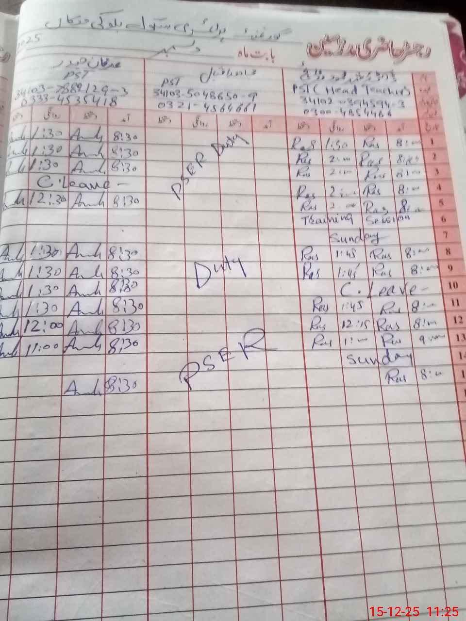 | Leave | Duty | Absent | Maternity | Medical | Ex- Pak |