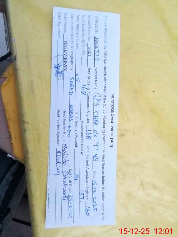 | EMIS Code: 38420379 | Name of School: GPS CHAK NO.97 NB | |||
