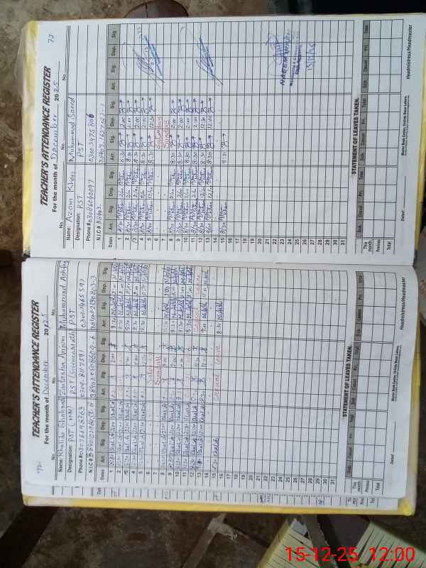 | Name: KH**** SH**** Designation: (School Headmaster's/Headmistress's) PST Phone/Cell Number: 03**** |