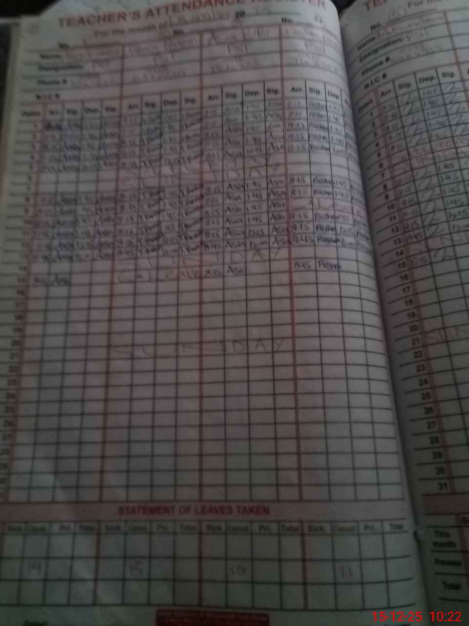 | 33**** | Ta**** Pa**** | PST Arts | Regular | 0 | 0 | 0 | 0 | 0 | 0 | 0 | 0 | 0 | Casual |