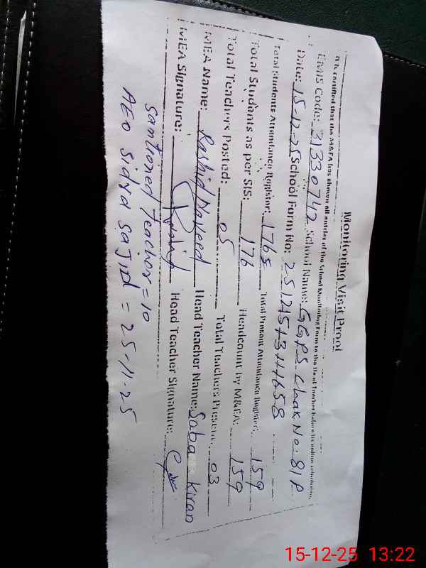 | Attendance Register | Head Teacher | MEA with School | Visit Proof |