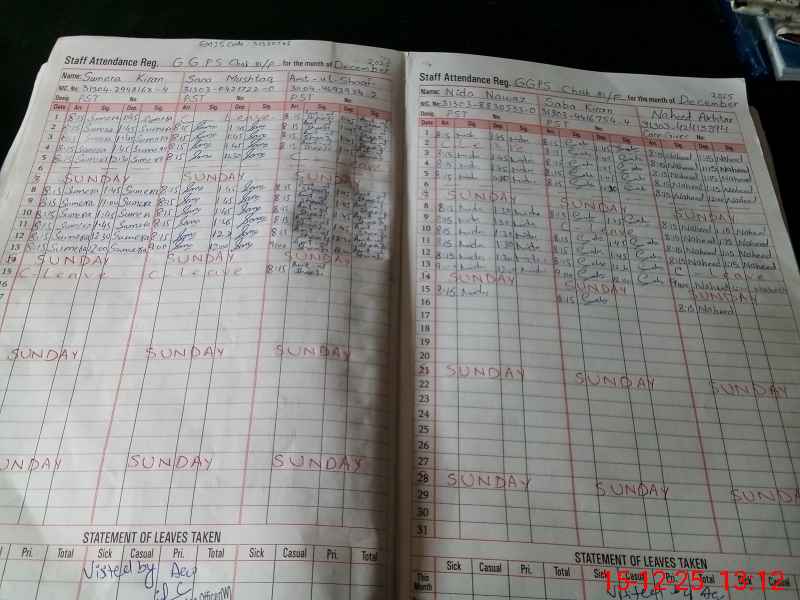 | CNIC | Full Name | Designation | R/C | Absence During Last Calender Month |