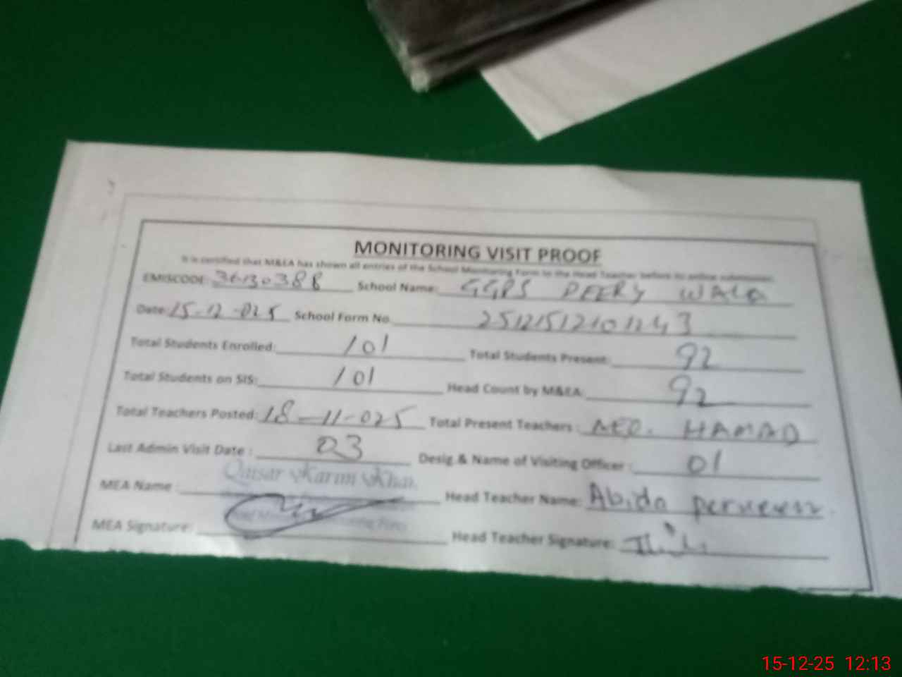 | EMIS Code: 36130388 | Name of School: GGPS CHAH PEEREY WALA NAI WALA | |||