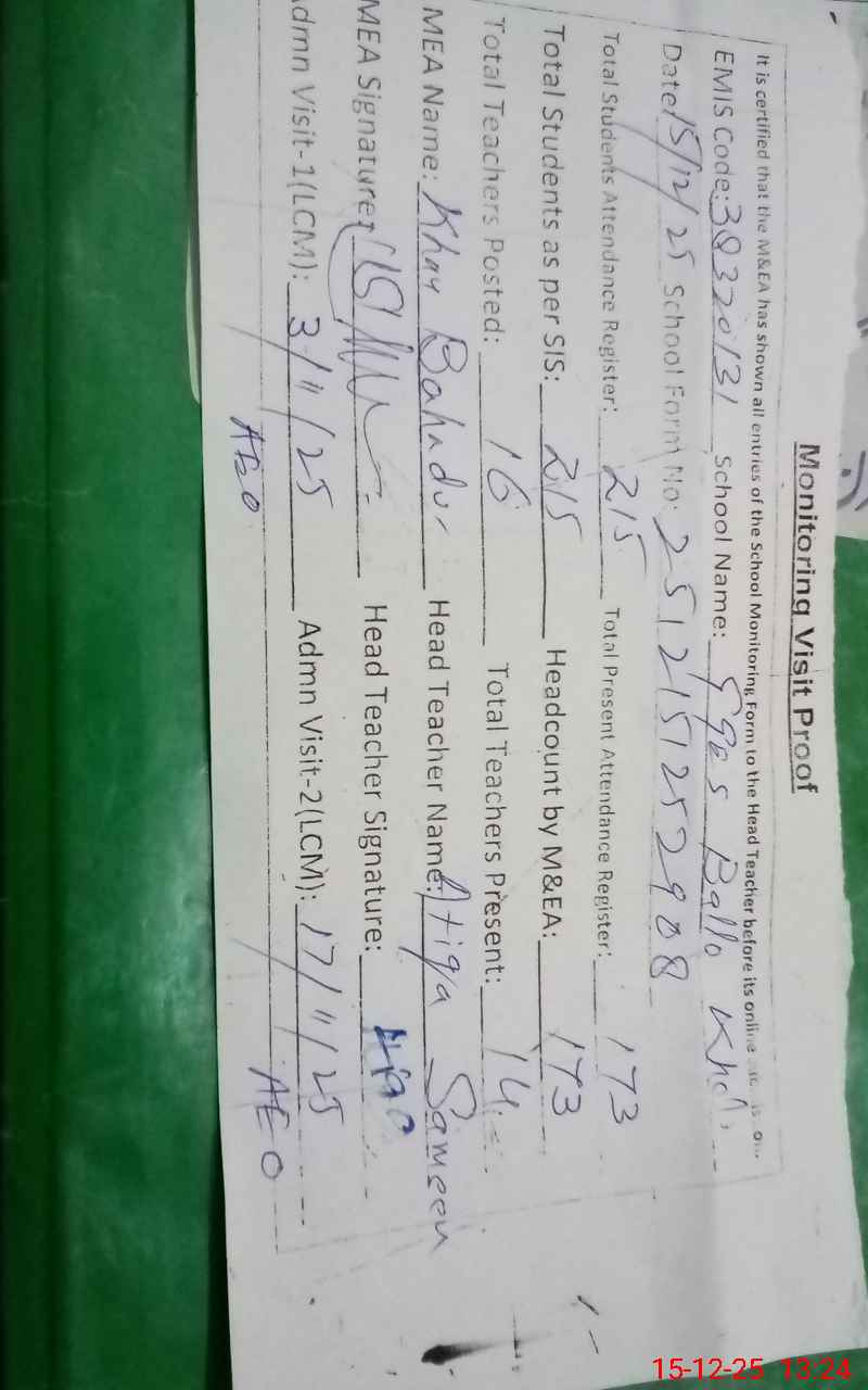 | EMIS Code: 38320131 | Name of School: GGES BALLO KHEL | |||