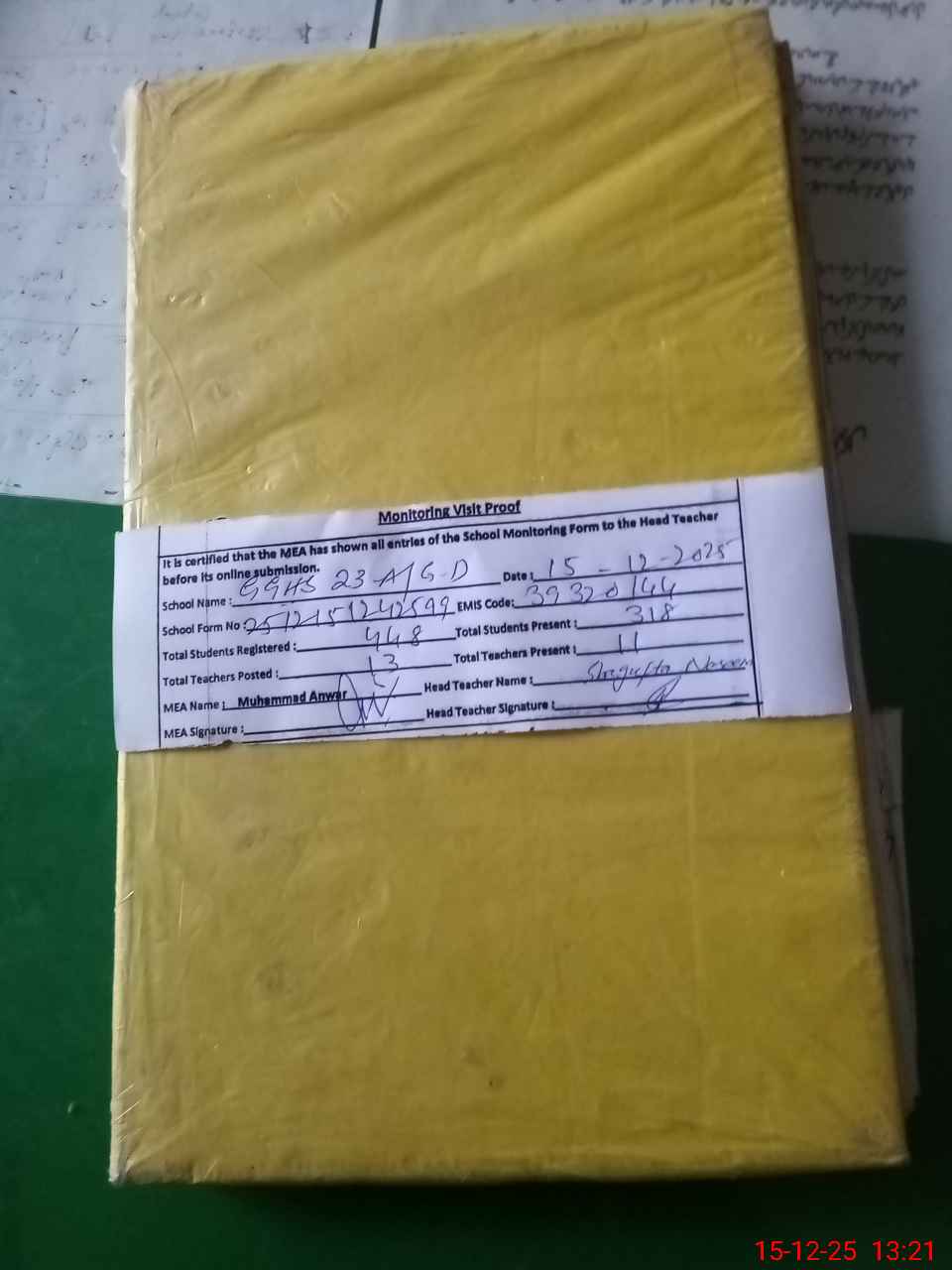 | EMIS Code: 39320144 | Name of School: GGHS 23-A/G.D | |||