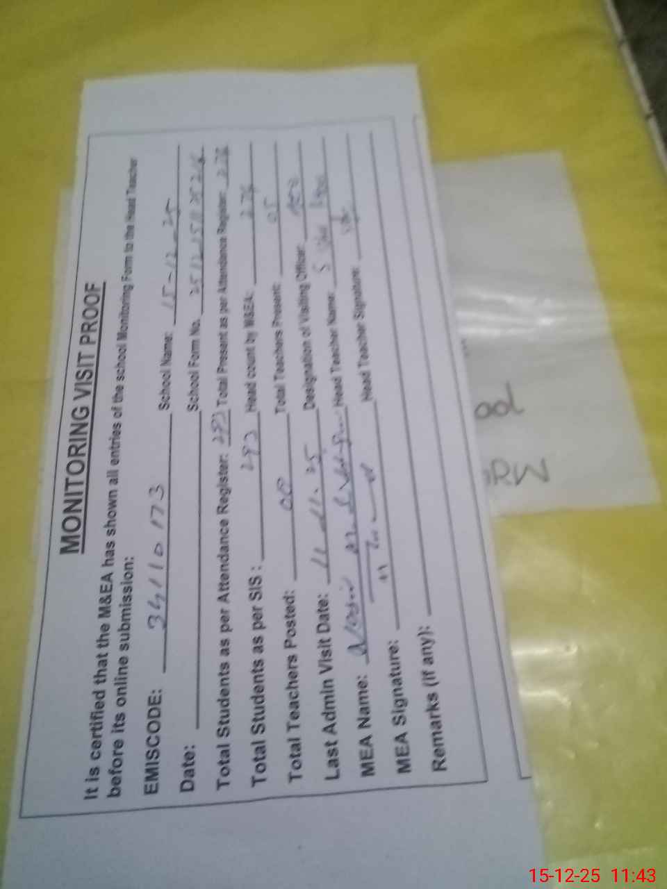 | Certified that this School was Inspected by the Undersigned MEA/DMO Today and the Information Stated Above is as Per Record. | |||||