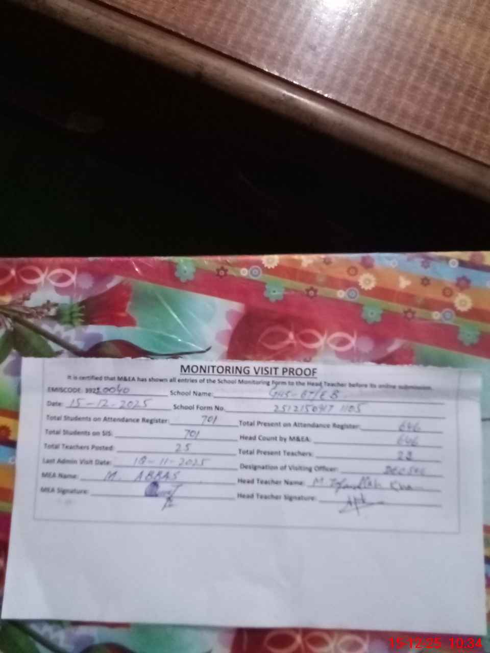 | EMIS Code: 39220040 | Name of School: GHS 67 EB | |||