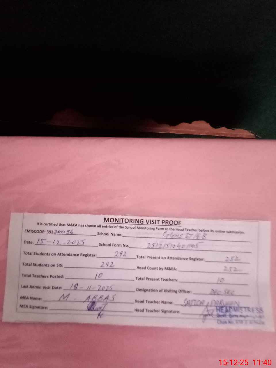 | EMIS Code: 39220036 | Name of School: GGHS 67 EB | |||