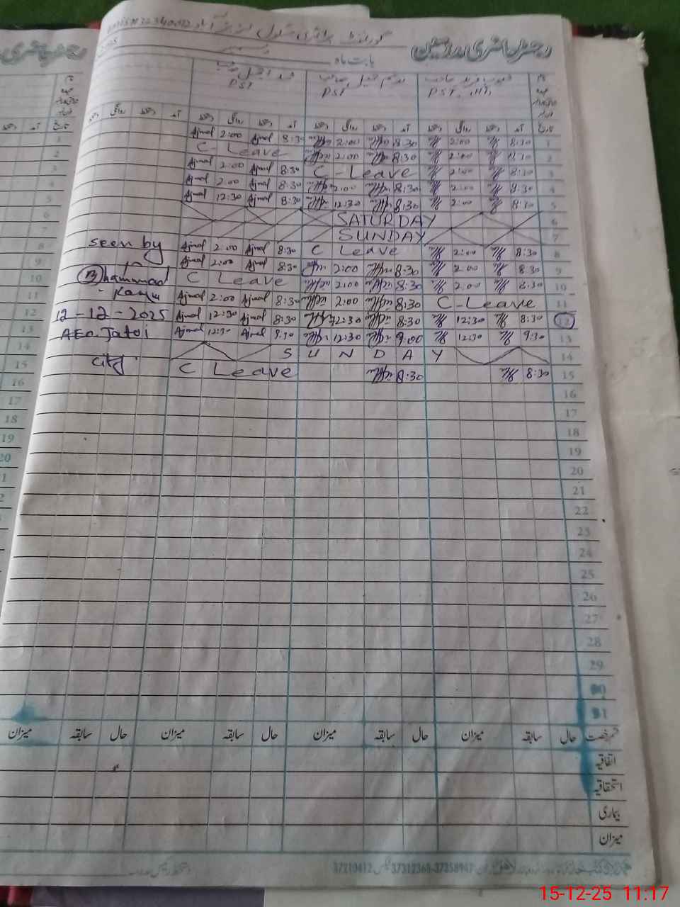 | CNIC | Full Name | Designation | R/C | Absence During Last Calender Month |