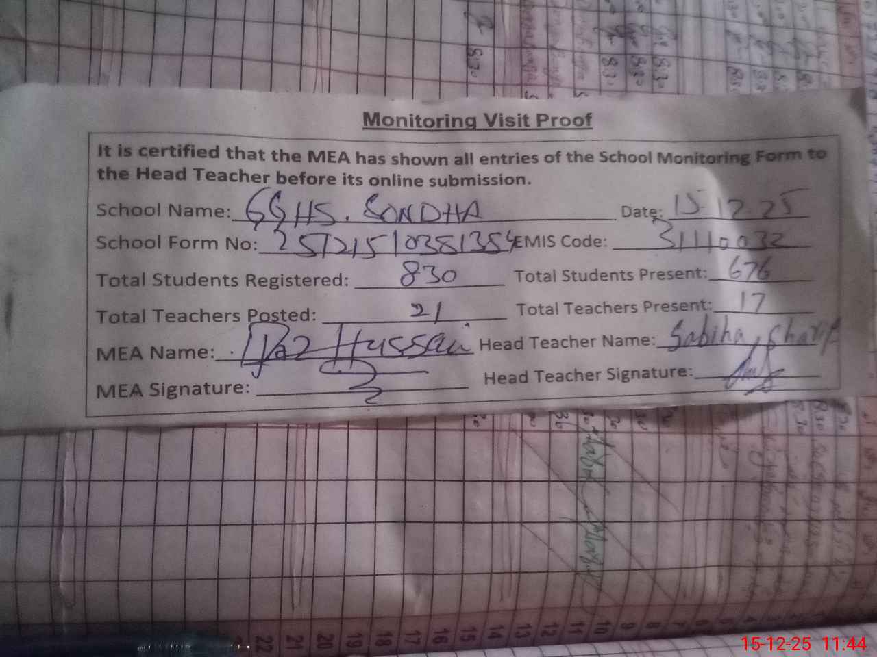 | EMIS Code: 31110032 | Name of School: GGHS SONDHA | |||
