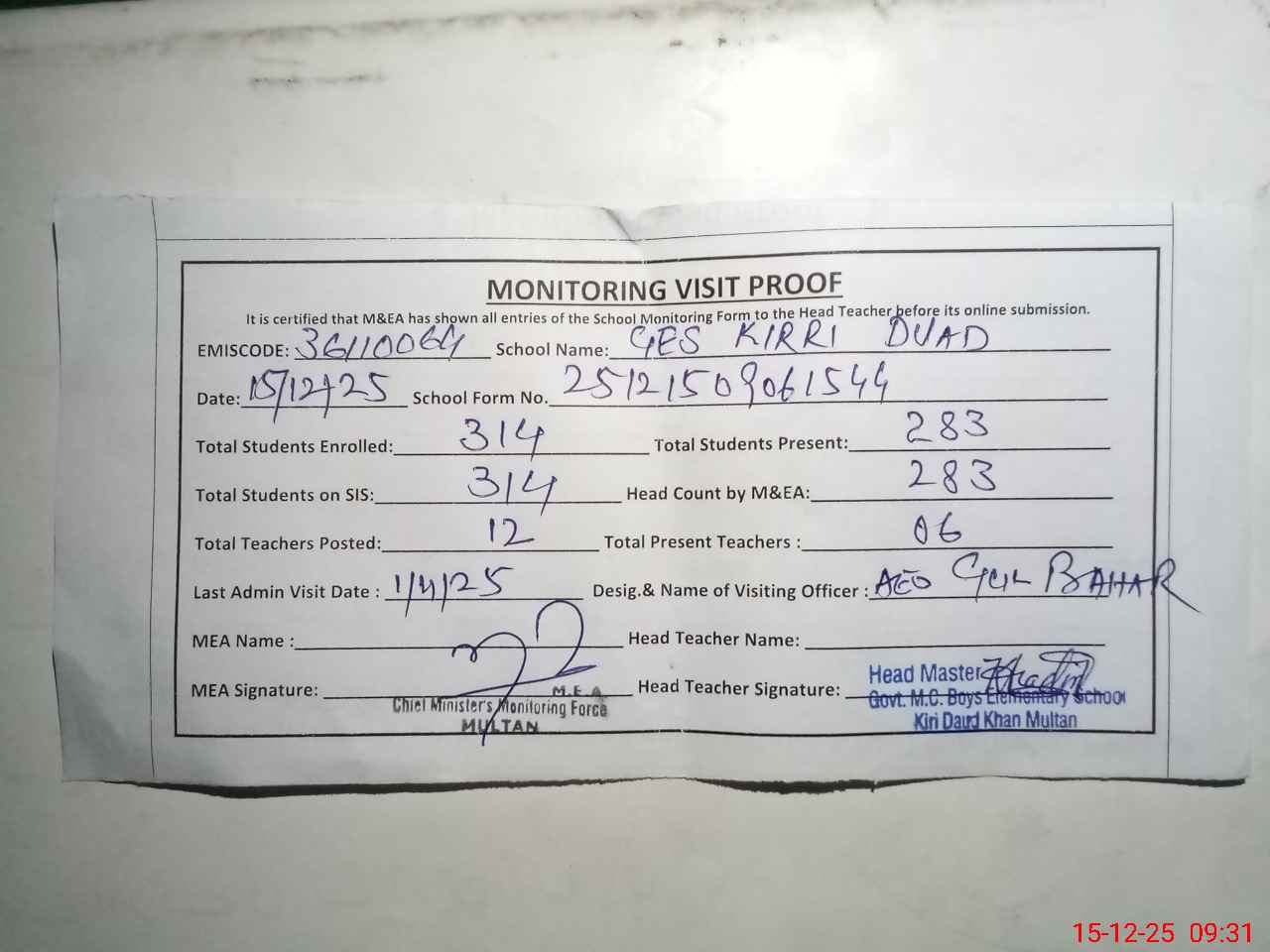 | EMIS Code: 36110064 | Name of School: GES MC KARRI DAUD KHAN MULTAN | |||