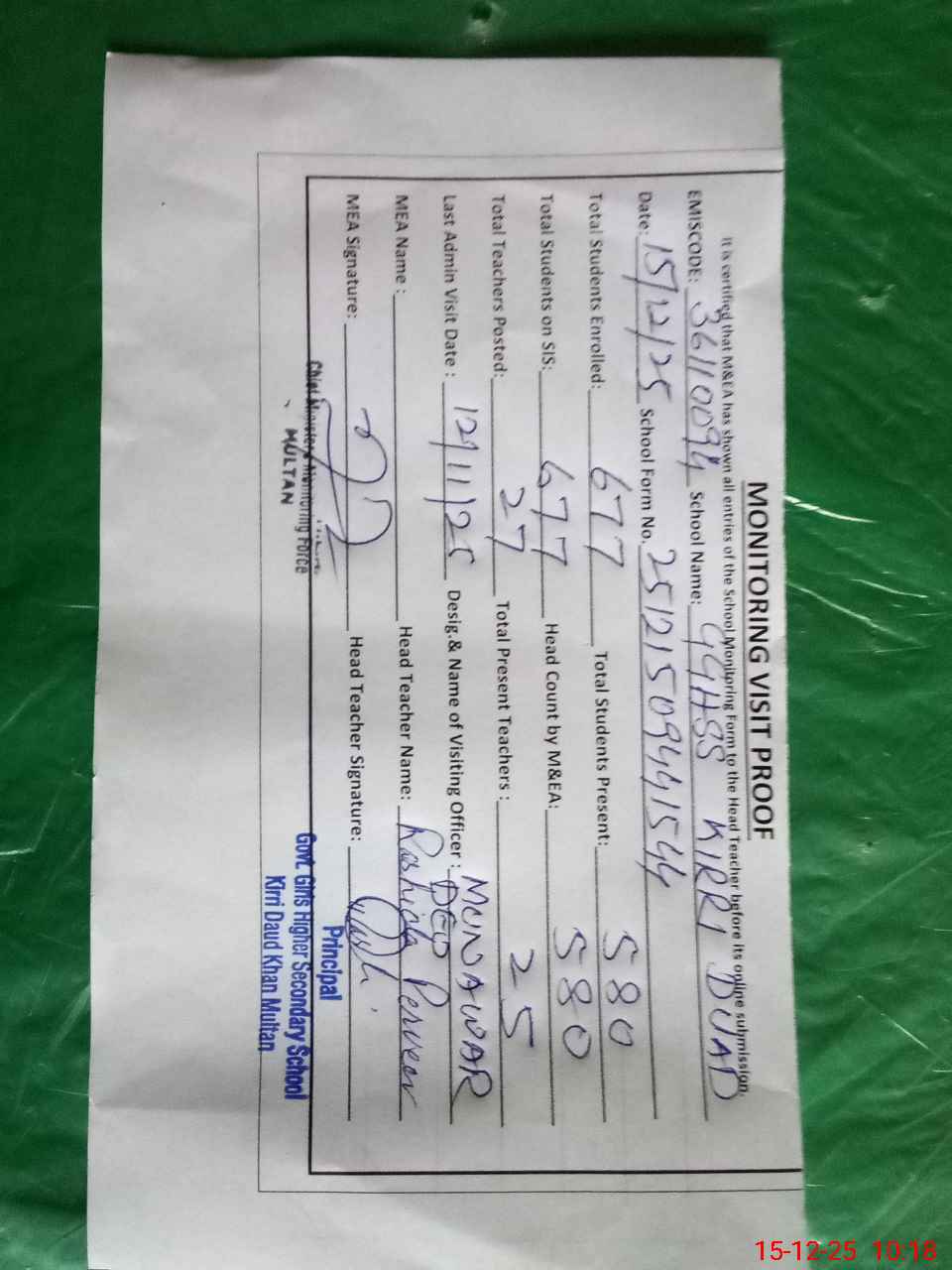 | EMIS Code: 36110094 | Name of School: GGHSS KIRRI DAUD KHAN MULTAN | |||