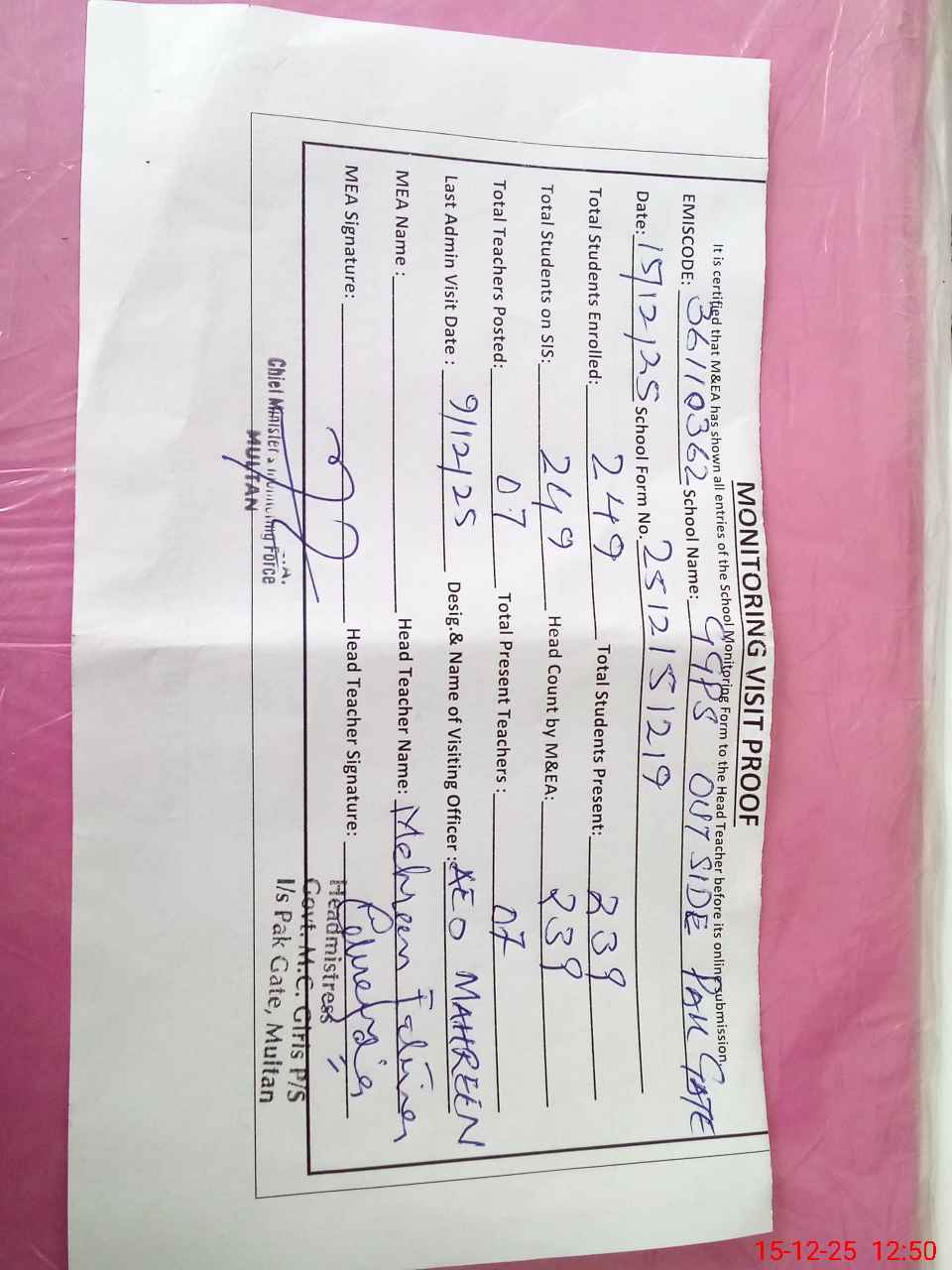 | EMIS Code: 36110362 | Name of School: GGPS MC UNDROON PAK GATE | |||