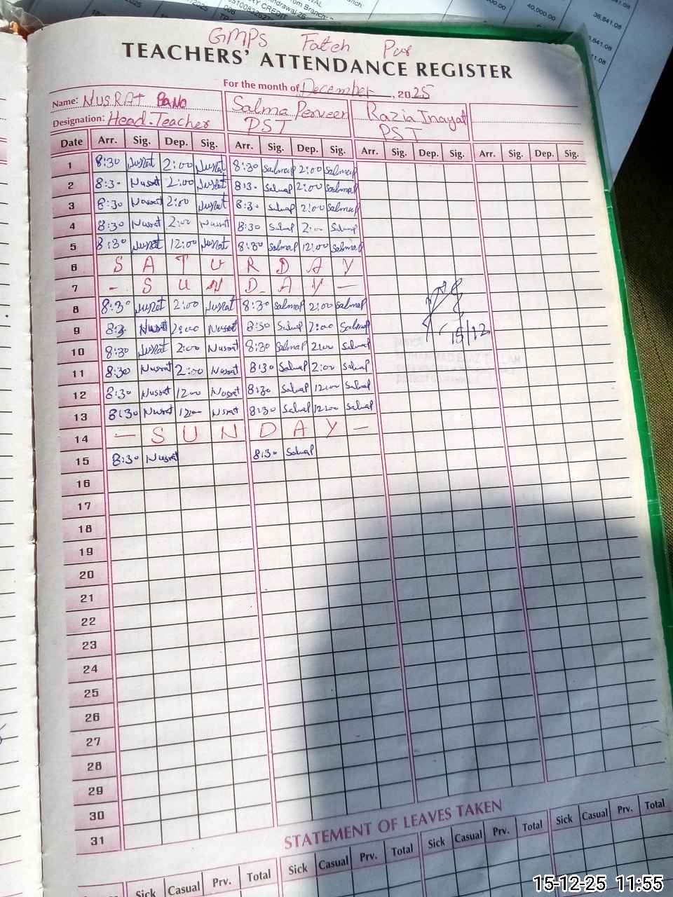 | EMIS Code: 34120446 | Name of School: GMPS FATEH PUR | |||