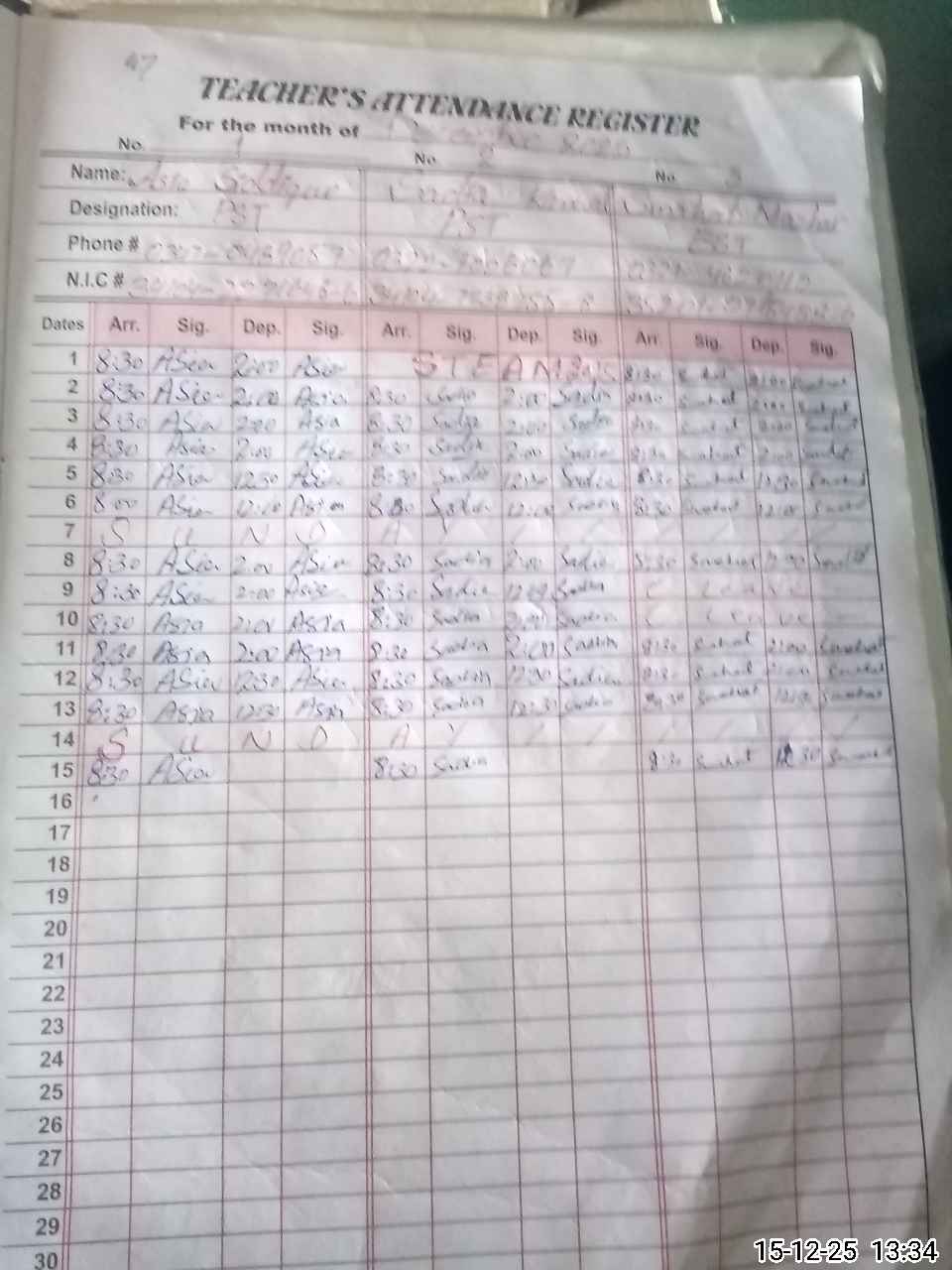 | Name: AS**** SI**** Designation: (School Headmaster's/Headmistress's) Pst Phone/Cell Number: 03**** |