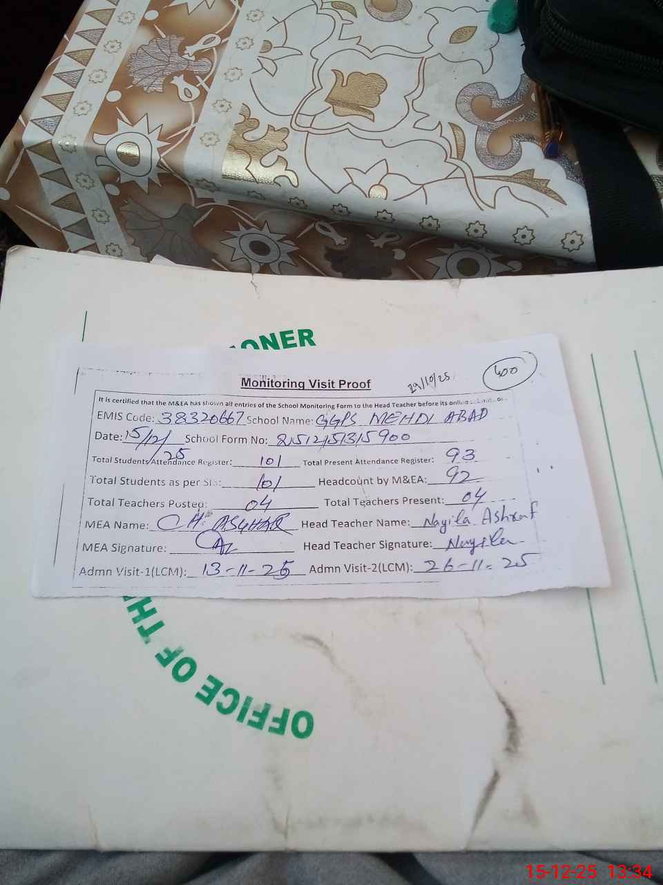 | EMIS Code: 38320667 | Name of School: GGPS MEHDI ABAD | |||