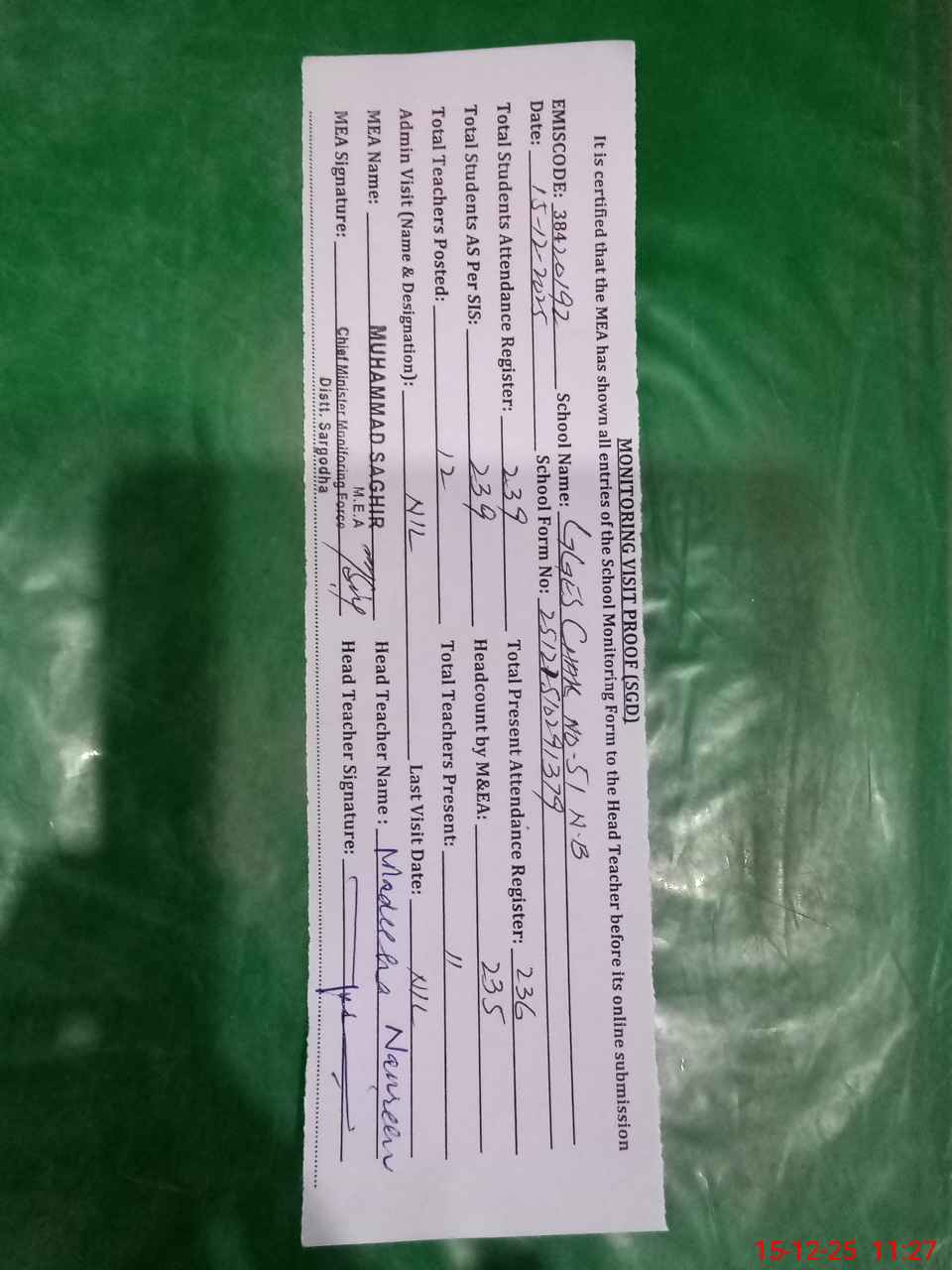 | EMIS Code: 38420192 | Name of School: GGES CHAK NO.51 NB | |||