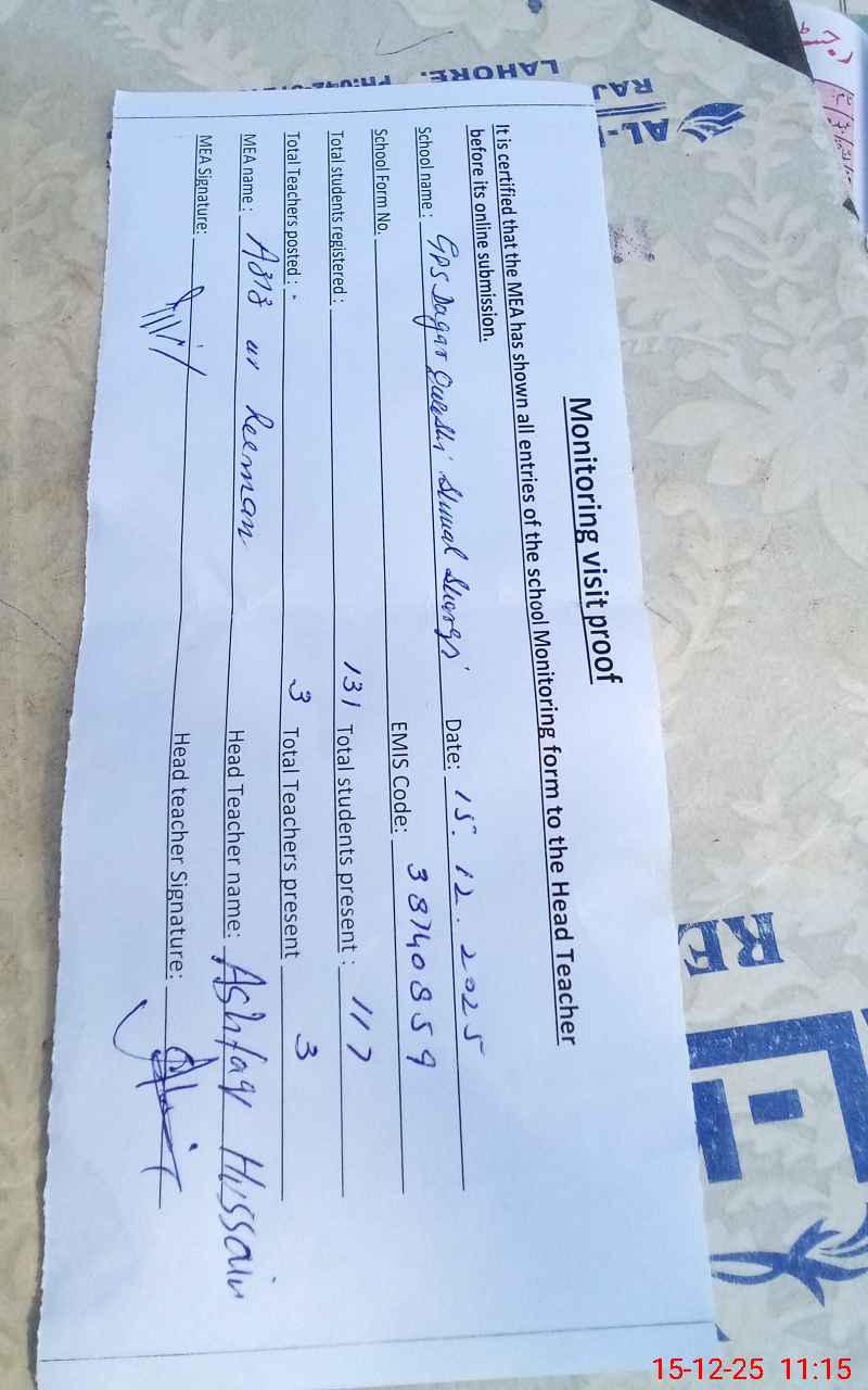 | EMIS Code: 38140859 | Name of School: GPS DAGAR QURESHI SHUMAL SHARKI | |||
