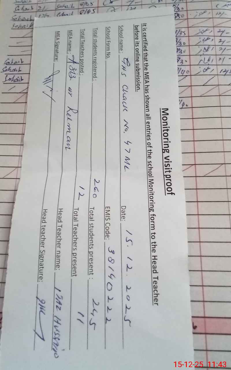 | EMIS Code: 38140222 | Name of School: GHS CHAK NO. 47/ML | |||