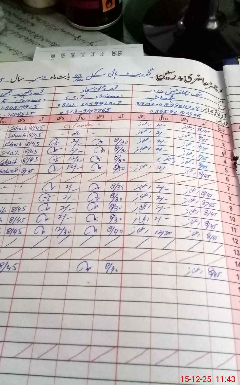 | Name: Ij**** Hu**** Designation: (School Headmaster's/Headmistress's) S ST INCHARGE Phone/Cell Number: 03**** |