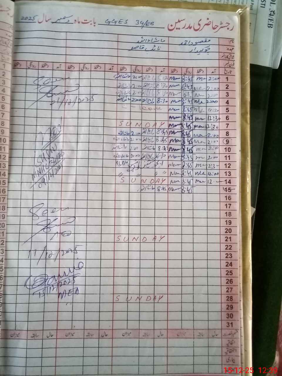 | Name: SA**** RA**** Designation: (School Headmaster's/Headmistress's) S.S.T.(GENERAL) Phone/Cell Number: 03**** |