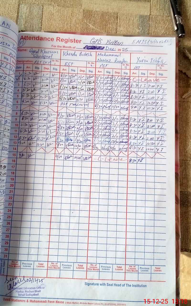 | Name: Sy**** Kh**** Sh**** Designation: (School Headmaster's/Headmistress's) PST/PTC/JV Phone/Cell Number: 03**** |