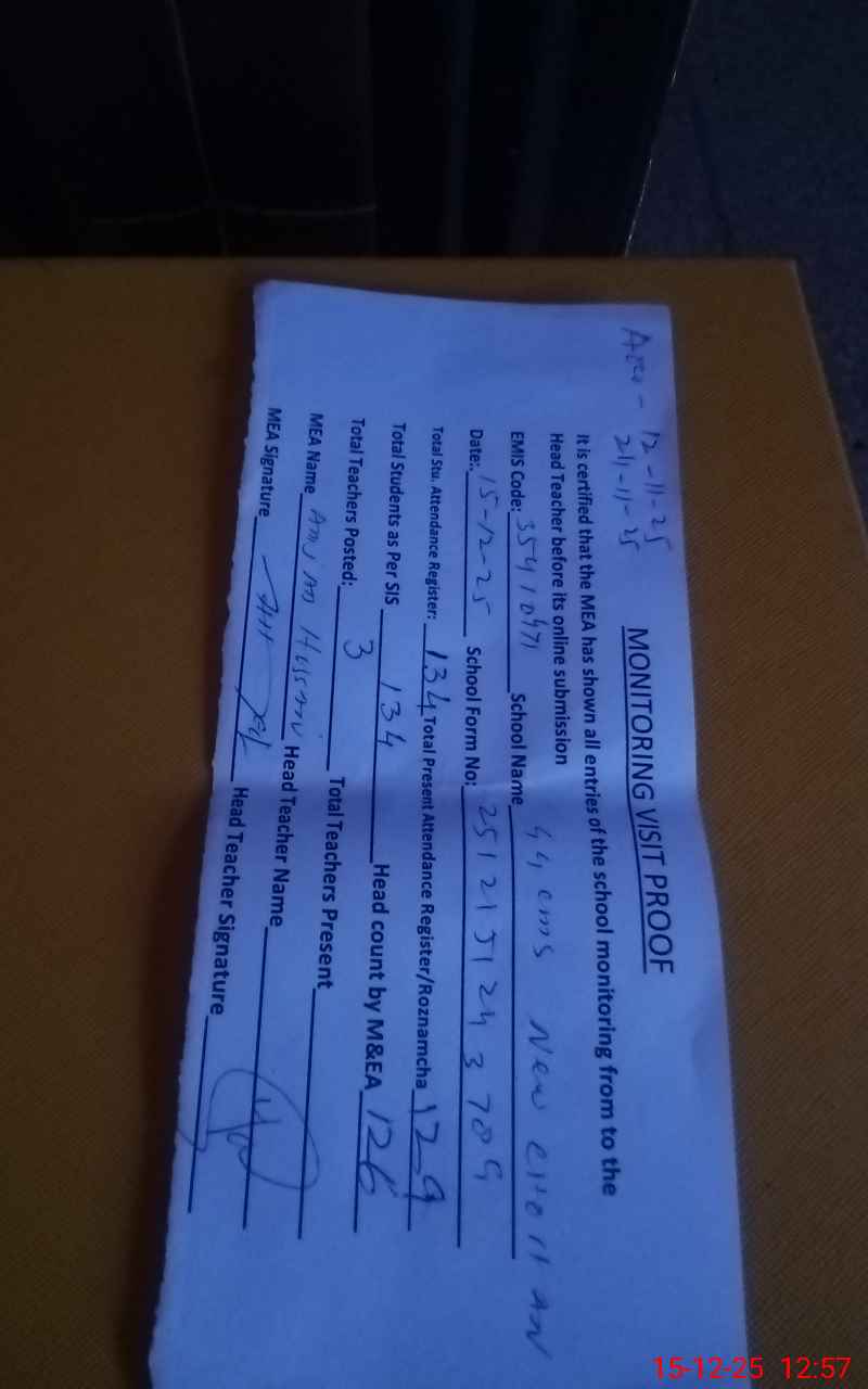 | Attendance Register | Head Teacher | MEA with School | Visit Proof |