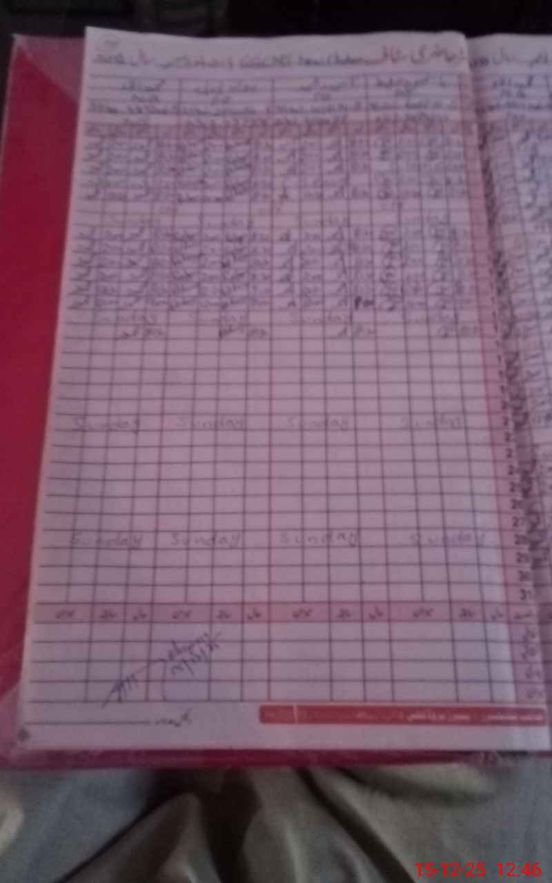 | CNIC | Full Name | Designation | R/C | Absence During Last Calender Month |