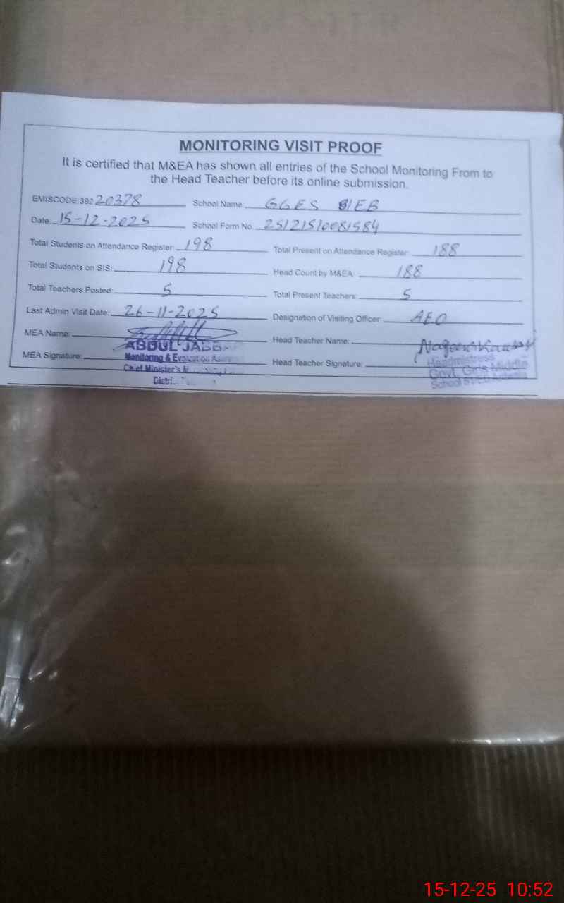 | Certified that this School was Inspected by the Undersigned MEA/DMO Today and the Information Stated Above is as Per Record. | |||||