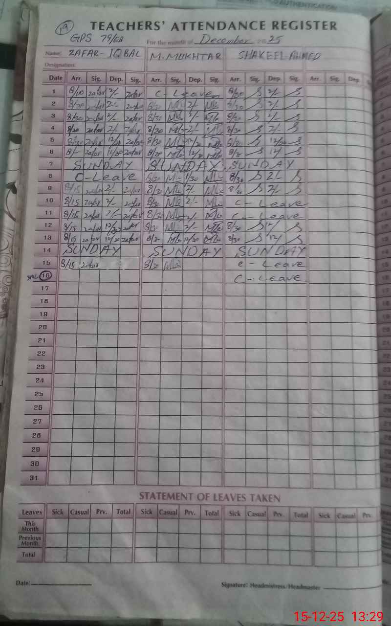 | Name: MU**** ZA**** IQ**** Designation: (School Headmaster's/Headmistress's) PST Phone/Cell Number: 03**** |