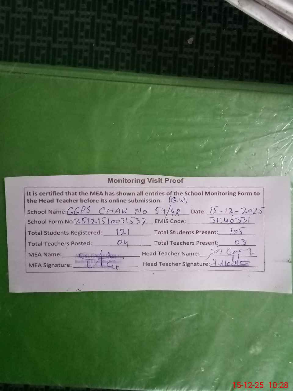 | EMIS Code: 31140331 | Name of School: GGPS 54/4R GUJAR WALI | |||