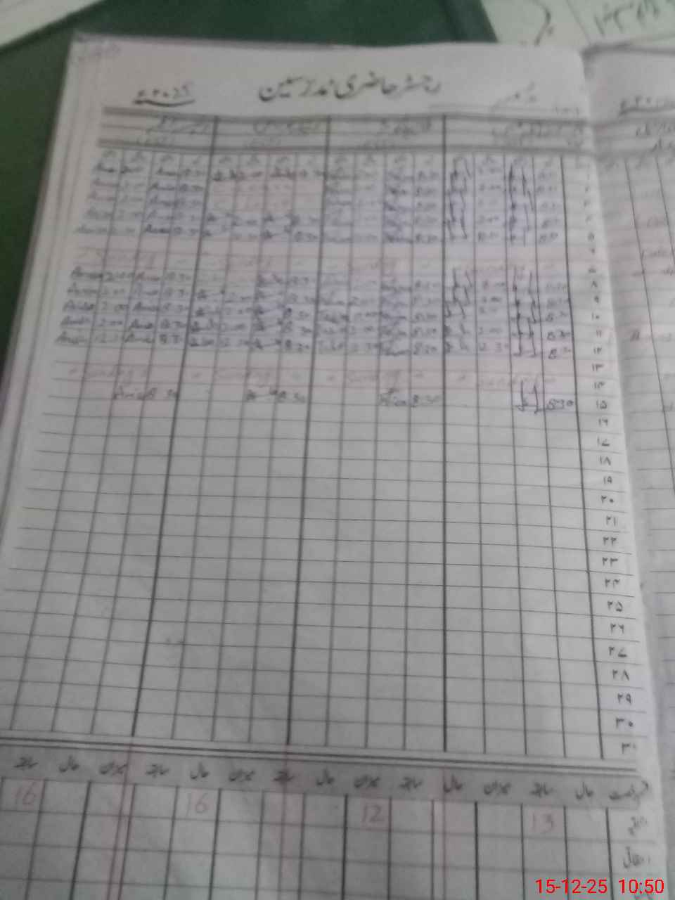| CNIC | Full Name | Designation | R/C | Absence During Last Calender Month |